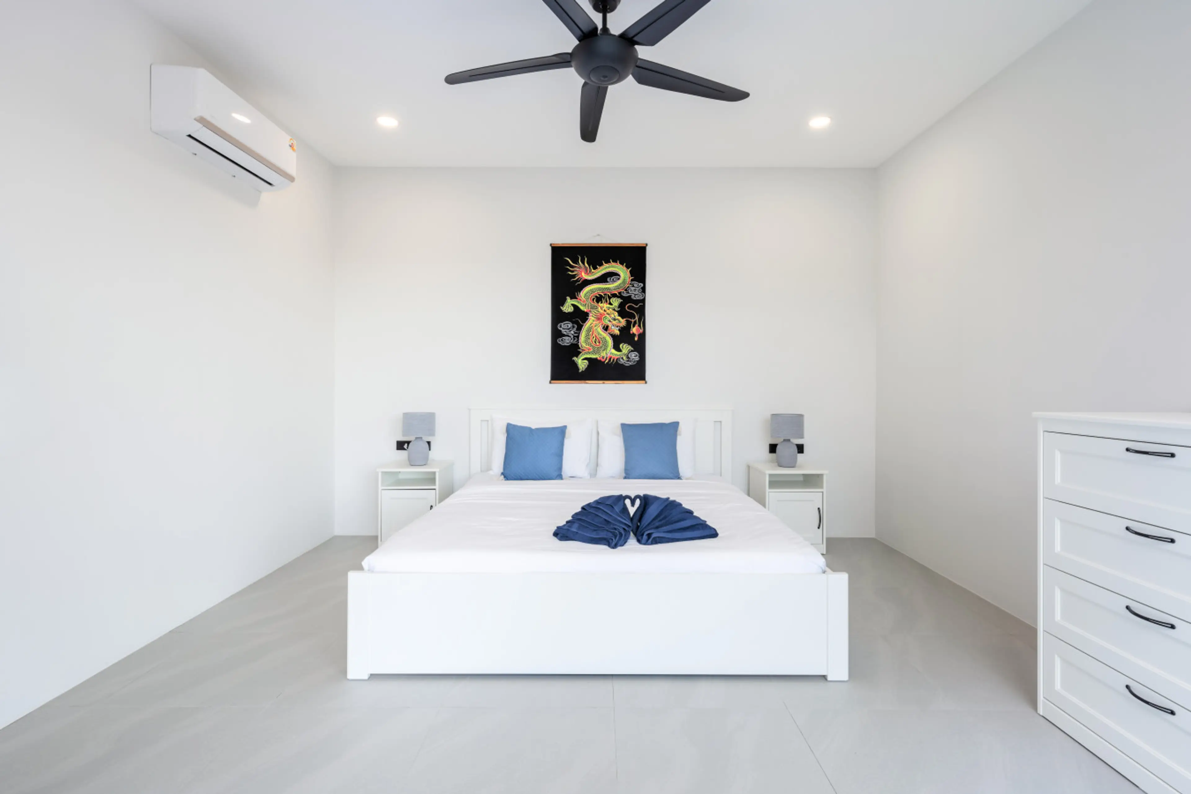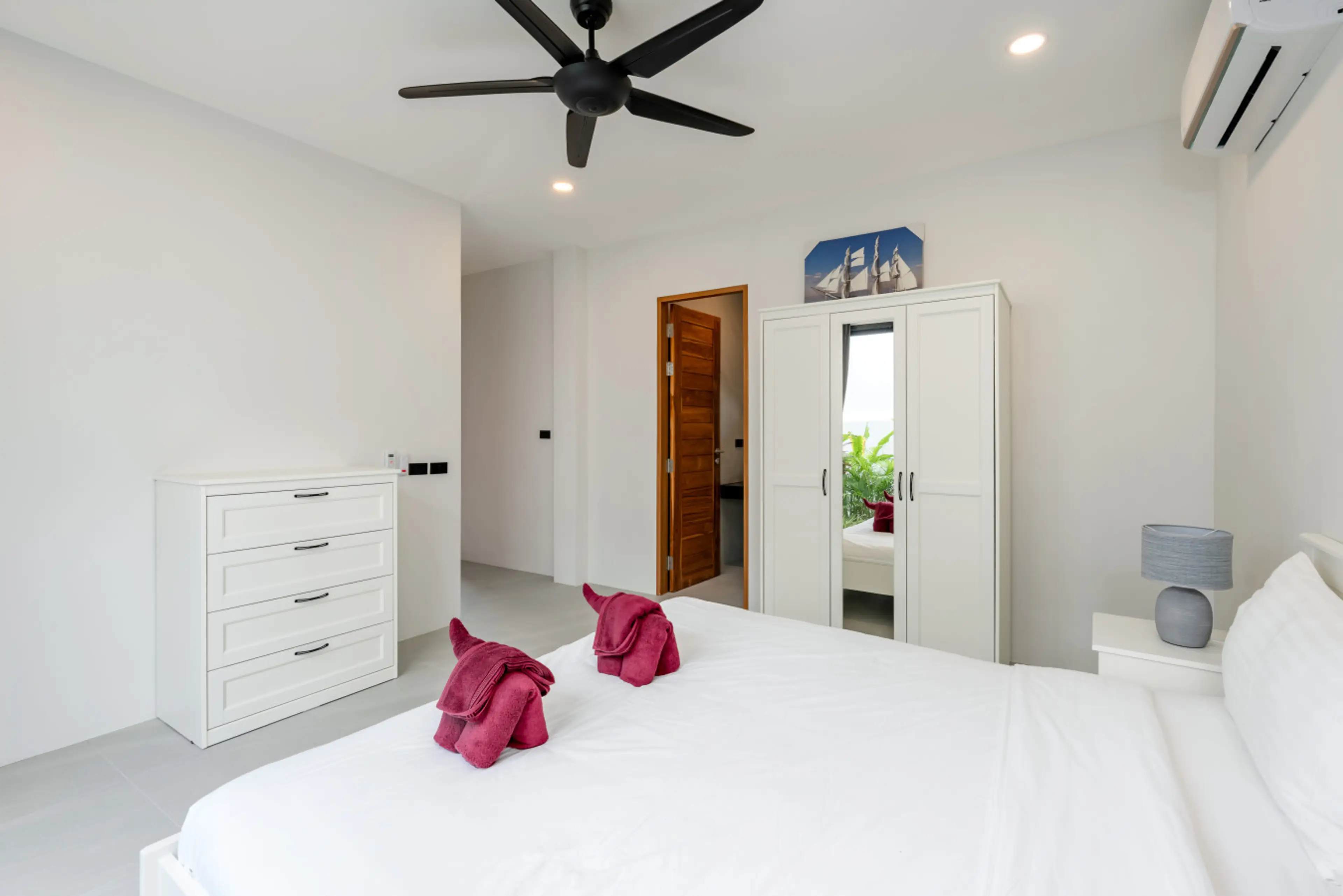 Relax in a bright 4-bedroom villa at Sawasdee Pool Villas, just minutes from the International School of Samui. Floor-to-ceiling glass opens to a private pool with a cascading edge, sun loungers and outdoor shower. Three bedrooms sit together on a quiet garden terrace; the fourth is a poolside suite...